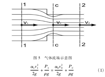 由于在标定实验中,空气的质量流量Qm可通过文丘里喷嘴测量换算得到,设断面1-1处、断面2-2处管道面积为S1、S2,则空气在两处的流速分别为: