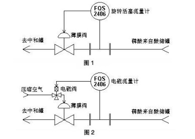 (1)根据工艺的酸流量情况我们选用了口径为DN50的电磁流量计,针对磷酸的特殊腐蚀特性确定了聚四氟乙烯(PIFE衬里和钽电极,电源为24VDC(因电磁阀也用该电源)。